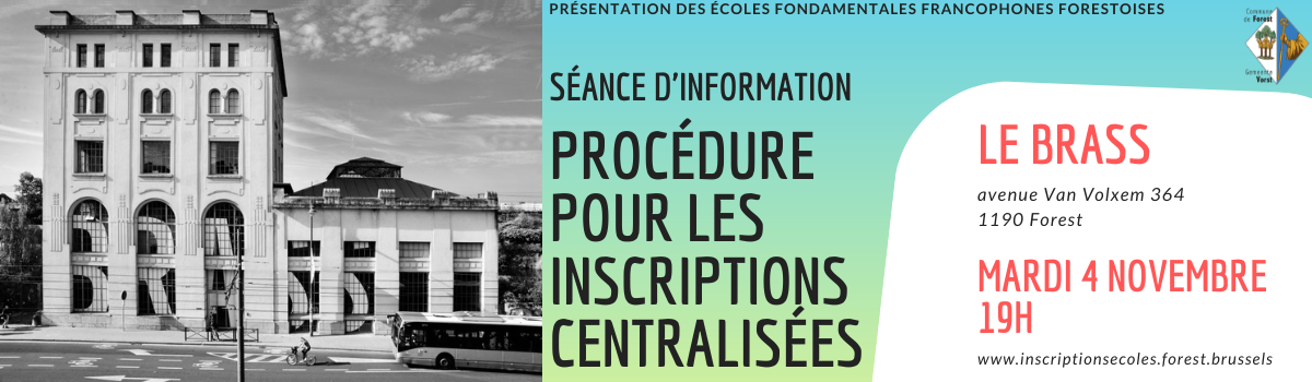 Bienvenue sur le site dédié aux inscriptions centralisées des écoles communales francophones forestoises. Vous trouverez ici toutes les informations concernant les dates et les procédures en cours.